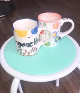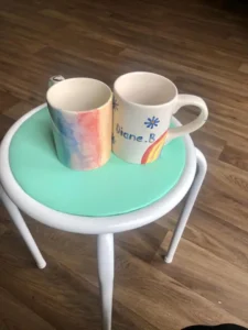 After the mugs had been customised by residents, they were sent away to the kiln and now they are back and looking fabulous!