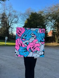 The visit, arranged by the home’s wellbeing co-ordinator and a relative of the artist, Pauline Whitehouse, was a huge success among resident patients with dementia. Super Freak came into the home and created an original painting with the residents, an experience that Pauline described as “amazing.”